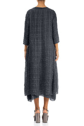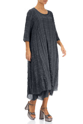 Robe en soie légère texturée graphite à plusieurs couches