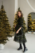 Cette robe en édition limitée, confectionnée en velours dévoré à motifs de roses, épouse gracieusement les courbes jusqu'en dessous du genou. Un ourlet en mousseline apporte volume et légèreté, la rendant idéale pour les grandes occasions.