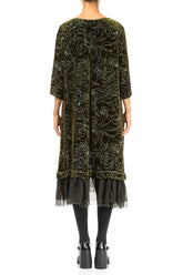 Robe évasée en velours de soie Roses Forest Mist à motif évasé