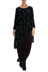 Confectionnée en velours de soie moelleux à la texture dévorée unique, ornée de bulles brûlées , et présentant un design asymétrique unique avec un côté plus long et une forme confortable, cette tunique attire assurément le regard.