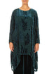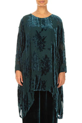 Tunique en velours de soie à motif paon dévoré à bords tombants
