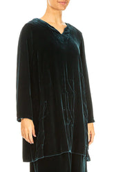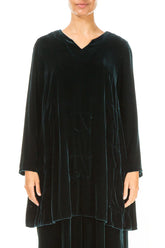 Une tunique en velours de soie d'une douceur luxueuse, dotée d'un décolleté en V raffiné et d'un drapé fluide. Sa silhouette à la fois décontractée et élégante en fait un choix idéal pour les occasions spéciales comme pour une tenue sophistiquée du matin au soir.