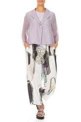 Veste Blazer en Soie et Coton Lilas à Bouton Unique
