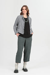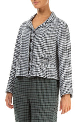 Cette veste en lin est confectionnée dans un tissu à carreaux traditionnel aux bords effilochés pour un aspect brut et texturé. Sa coupe décontractée met en valeur la construction et les détails de surface. Une pièce intemporelle idéale au quotidien.