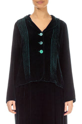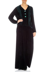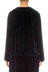 Cette élégante veste en velours de soie, ornée d'une fermeture à trois boutons raffinée et de deux rangées de plis sur le devant, est une pièce intemporelle que vous chérirez pendant de nombreuses saisons. Portez-la sur un chemisier en soie et un pantalon large, ou associez-la à une robe pour une touche de glamour décontracté.