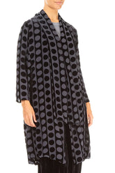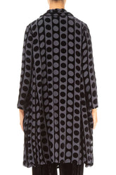 Veste en velours de soie bleu ardoise à lignes bulles dévorées ouverte