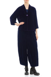 Cette veste est confectionnée en velours de soie luxueux. Ornée d'un bouton unique sur le côté et dotée d'une coupe évasée, elle est agréable à porter et facile à assortir : parfaite pour toutes les occasions.