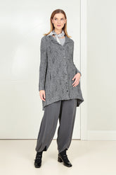 Adoptez une élégance naturelle avec cette veste confectionnée dans un mélange texturé de soie, lin et coton. Dotée d'un col classique, d'une coupe trapèze et d'un ourlet arrière plus long, elle se superpose harmonieusement à toutes vos tenues, apportant style raffiné et sophistication confortable pour les journées plus fraîches.